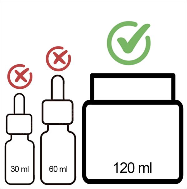 It's not about ingredient cost—the difference between 30ml and 120ml is pennies. It's about hiding the flaws of water-based skincare.